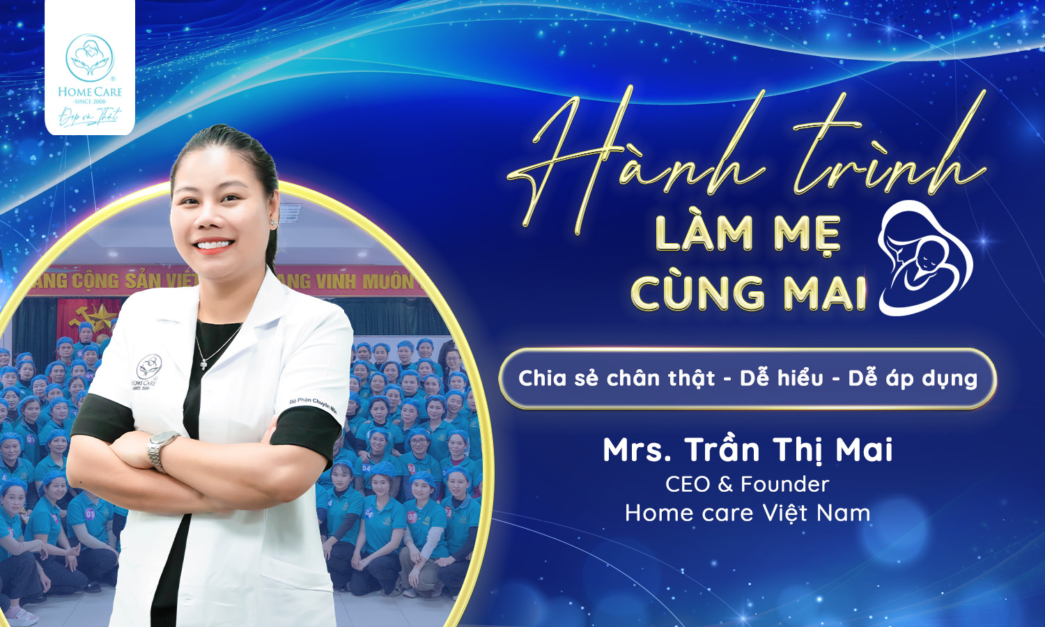 Bà Trần Thị Mai là hình mẫu tiêu biểu của sự đam mê và bản lĩnh trong lĩnh vực chăm sóc Mẹ & Bé. Với tầm nhìn chiến lược, sự tận tâm và năng lực lãnh đạo đầy cảm hứng, bà đã gây dựng nên thương hiệu Home Care – một hệ sinh thái dịch vụ và sản phẩm Mẹ & Bé phát triển vững mạnh, mang lại những giá trị thiết thực và nhân văn cho cộng đồng. Câu chuyện thành công của bà Trần Thị Mai là nguồn cảm hứng bất tận cho những ai đang ấp ủ khát vọng khởi nghiệp và cống hiến.